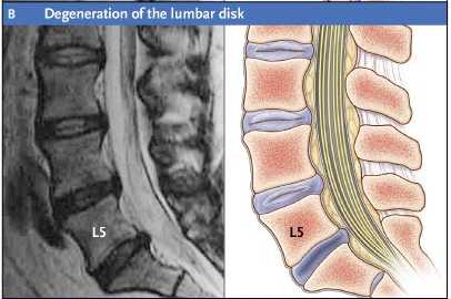 abnormal MRI scans of their back that are entirely benign. Images of the Spine from Normal Volunteers. (see below) Herniation of the lumbar disk, as shown in Panel A, is found in 25 to 50 percent of asymptomatic subjects; extrusion of the disk material is found in 1 to 18 percent. Degeneration of the lumbar disk, shown in Panel B, increases with age and is found in 25 to 70 percent of asymptomatic subjects. Signal changes in the vertebral end plates (Panel C, arrows) are found in 10 percent of asymptomatic subjects; severe changes are found less frequently. Panel D shows a disk with a bright signal in the annular fissure. This represents degenerative changes that are found in 14 to 33 percent of asymptomatic subjects. Despite the high prevalence in healthy persons, these findings are often described as causing serious low back pain and are treated with spinal fusion.