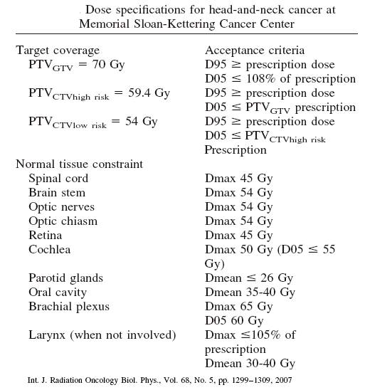 IMRT Technical Dose Prescriptions and Dose Constraints