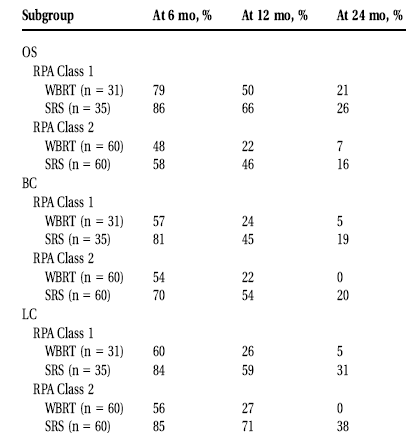 SRS than WBRT for patients in RPA Classes 1 and 2,