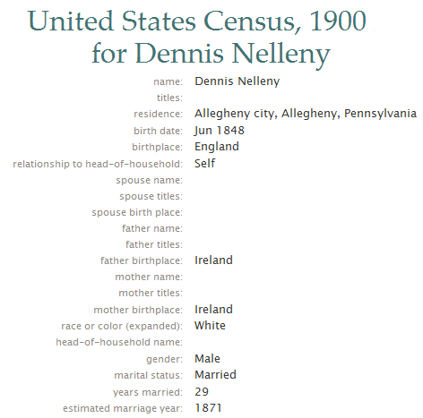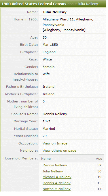 was born on February 13, 1873 to Dennis and Julia (Carroll) Nelleny