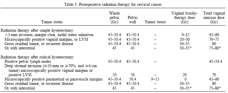 strongly recommends that radiation treatment for cervical carcinoma