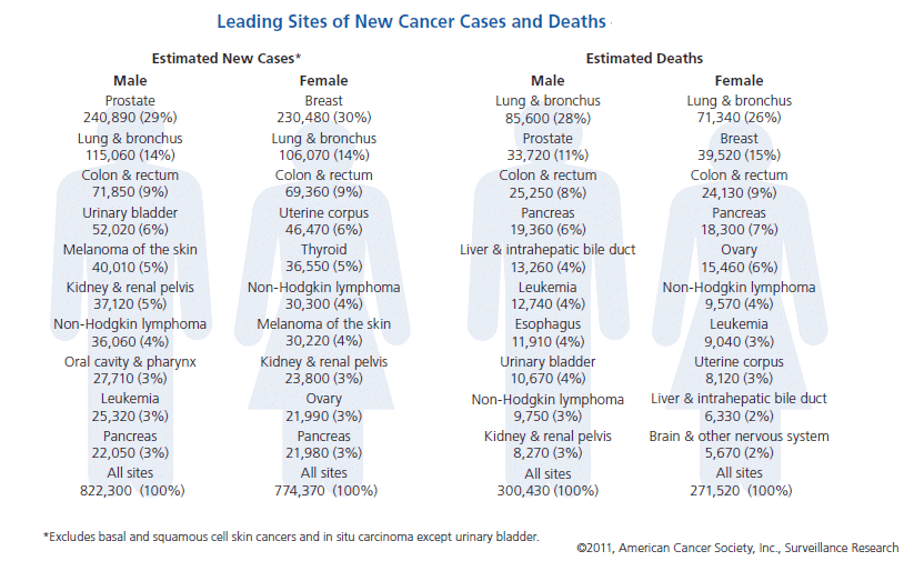 According to the American Cancer Society (ACS) the life time risk of developing cancer is now 44% for men and 38% for women (see section on cancer statistics and below). There are on-line calculators which will determine if your risk is higher or lower than average (see calculators). There is more known about family history and cancer (go here) and more genes that can be screened for the genetic risks of cancer (go here)