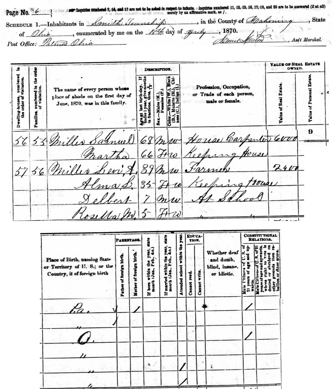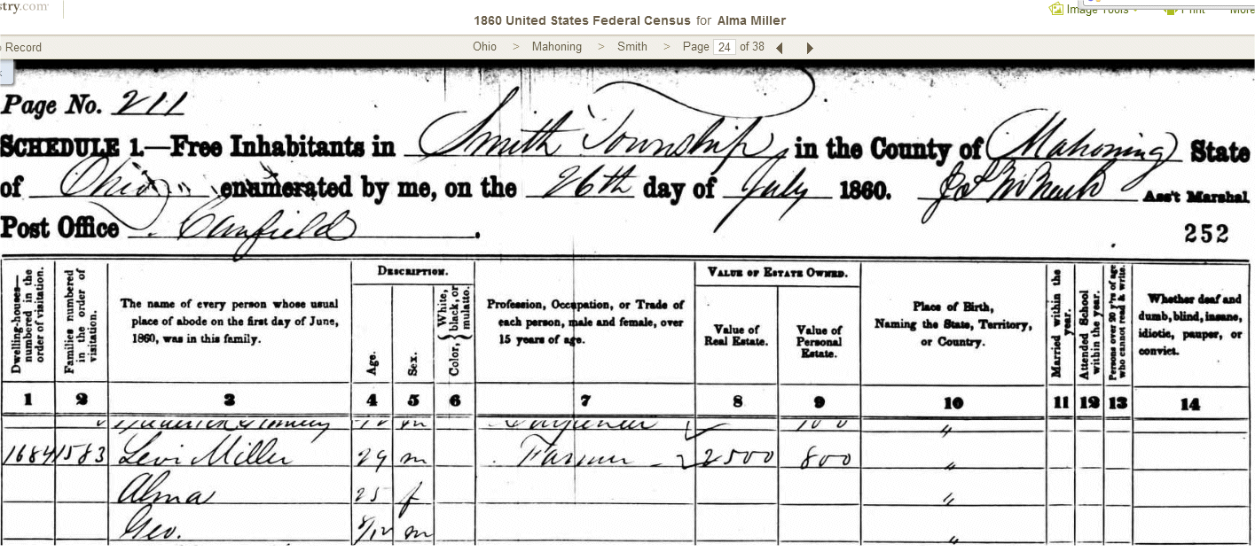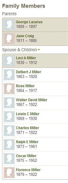 to her marriage to Levi Miller at the age of 24 on January 6, 1859. Of their eight
