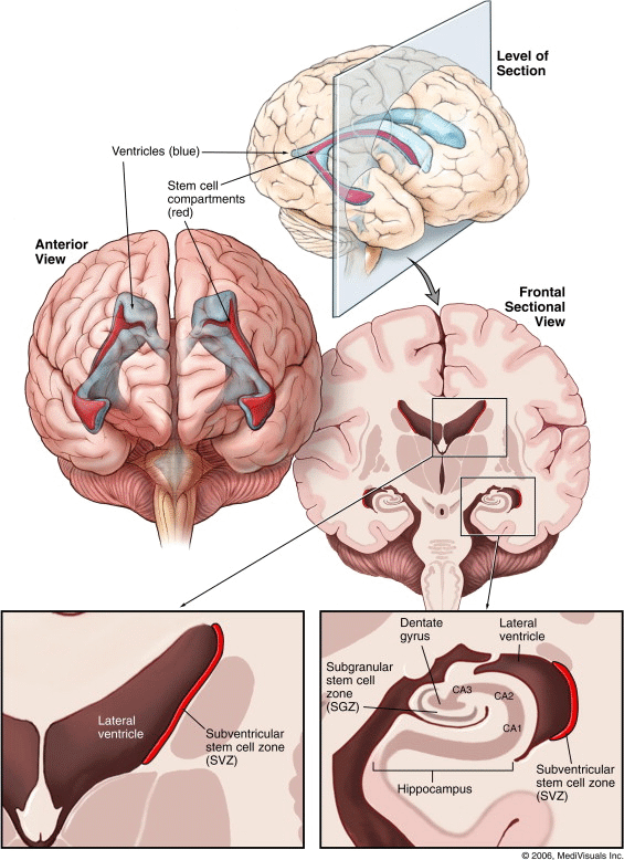 predilection of NSCs for the periventricular (SVZ) and hippocampal (SGZ) niches permits