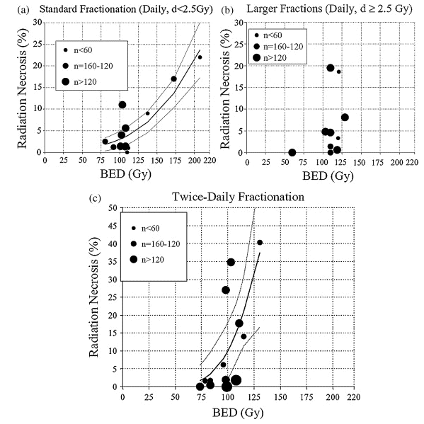 dose (BED) and radiation necrosis after fractionated radiotherapy.