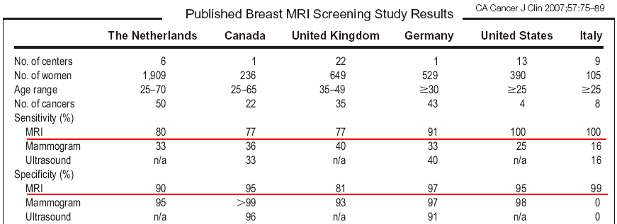 Breast MRI is playing an increasing role in imaging breast cancer (see textbook article) and review article here. There are some concerns that routine MRI results in needless mastectomies (go here).