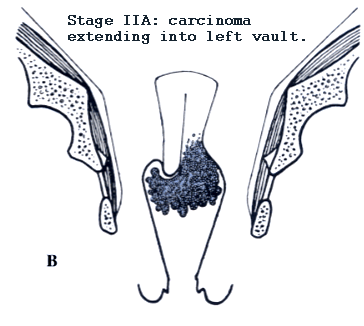 stage system here The FIGO stage system and AJCC are discussed below and here, pictures of each stage are noted: stage IB, stage IIa, stage IIb, stage IIIa, stage IIIb, stage IVa, more stage images: stage I, stage II, stage III, stage IV Stage Distribution: from the NCDB the stage of 17,396 women diagnosed in 2000: