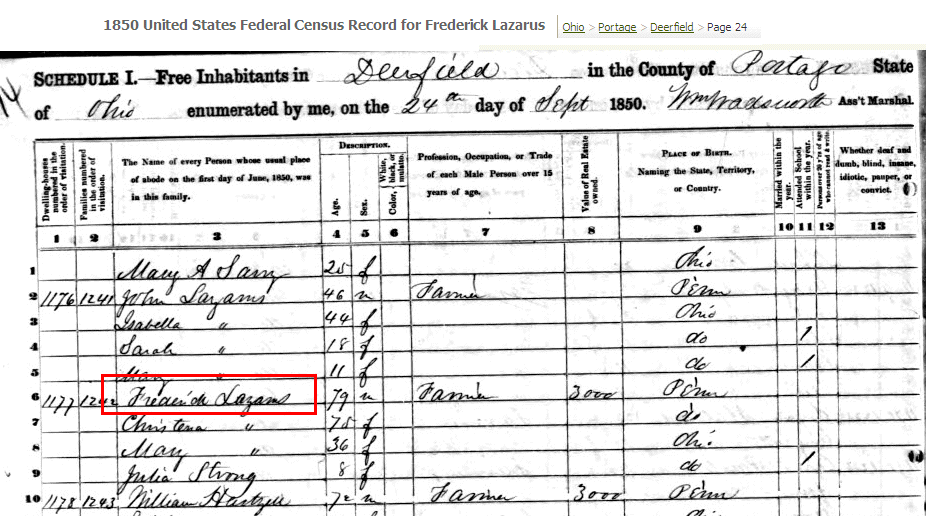 Country, Ohio, and Frederick Lazarus and Christina move with them to Ohio.
