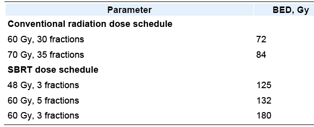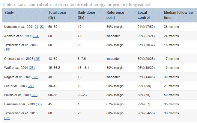 tumor control in medically inoperable patients with Stage I-II non-small-cell lung cancer
