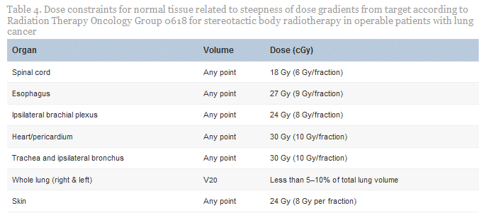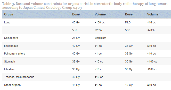 48 Gy in 4 fractions using a stereotactic body frame was useful for the treatment of lung tumors.