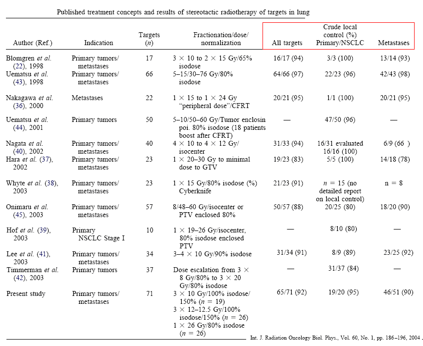 of primary or metastatic lung tumors. However, the optimum total dose and fractionation
