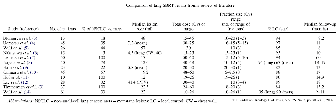 Timmerman R, Papiez L, McGarry R, Likes L, DesRosiers C, Frost S, Williams M. Chest. 2003