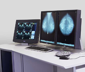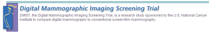 Digital versus Film Mammography for Breast-Cancer Screening Pisano E. D., he Digital Mammographic Imaging Screening Trial (DMIST) Investigators Group N Engl J Med 2005; 353:1773-1783, Oct 27, 2005; Background Film mammography has limited sensitivity for the detection of breast cancer in women with radiographically dense breasts. We assessed whether the use of digital mammography would avoid some of these limitations. A total of 49,528 asymptomatic women presenting for screening mammography at 33 sites in the United States and Canada underwent both digital and film mammography. All relevant information was available for 42,760 of these women (86.3 percent). Mammograms were interpreted independently by two radiologists. Breast-cancer status was ascertained on the basis of a breast biopsy done within 15 months after study entry or a follow-up mammogram obtained at least 10 months after study entry. Receiver-operating-characteristic (ROC) analysis was used to evaluate the results. Results In the entire population, the diagnostic accuracy of digital and film mammography was similar. However, the accuracy of digital mammography was significantly higher than that of film mammography among women under the age of 50 years , women with heterogeneously dense or extremely dense breasts on mammography and premenopausal or perimenopausal women. Conclusions The overall diagnostic accuracy of digital and film mammography as a means of screening for breast cancer is similar, but digital mammography is more accurate in women under the age of 50 years, women with radiographically dense breasts, and premenopausal or perimenopausal women. |