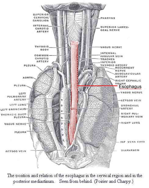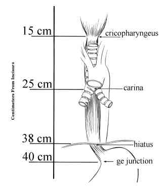 The length of the esophagus and landmarks are noted (more detailed anatomy) and here