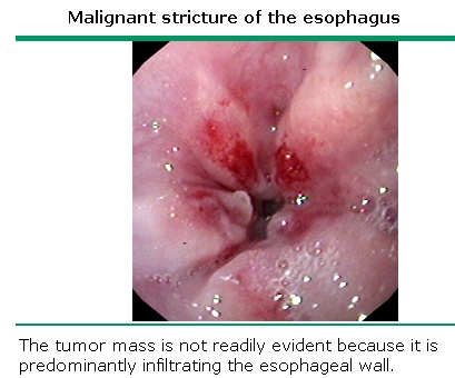 Diagnosis and staging of esophageal cancer INTRODUCTION Squamous cell carcinoma and adenocarcinoma account for more than 95 percent of esophageal malignant tumors. For most of the twentieth century, squamous cell carcinomas comprised the vast majority of esophageal cancers. In the 1960s, squamous cell cancers accounted for more than 90 percent of all esophageal tumors in the United States, whereas esophageal adenocarcinomas were considered so uncommon that some authorities questioned their existence. For the past two decades, however, the incidence of adenocarcinoma of the esophagus has increased dramatically in Western countries so that the two tumors now occur with almost equal frequency The two forms of esophageal cancer differ in a number of features, including the location of the tumor and predisposing factors (show table 1). Smoking and alcohol are major predisposing factors for squamous cell tumors while Barrett's esophagus with specialized intestinal metaplasia (a complication of gastroesophageal reflux disease [GERD]) and possibly GERD itself are the only known major risk factors for adenocarcinoma. Survival statistics for the symptomatic patient with esophageal cancer are poor and very highly correlated with staging. The diagnosis and staging of esophageal cancer with emphasis upon endoscopic techniques will be reviewed here. The epidemiology, clinical manifestations, and the role of largely palliative endoscopic techniques in the treatment of esophageal cancer are discussed separately. DIAGNOSTIC TESTING Although barium studies may suggest the presence of esophageal cancer, the diagnosis is usually established by endoscopy. Early esophageal cancer may appear as a superficial plaque or ulceration (show endoscopy 1). Advanced lesions may appear as a stricture (show endoscopy 2), an ulcerated mass (show endoscopy 3), a circumferential mass (show endoscopy 4), or a large ulceration. Biopsy The endoscopic appearance of a large mucosal mass is frequently diagnostic of esophageal cancer. Biopsies confirm the diagnosis in more than 90 percent of cases Early studies found that the greater the number of biopsies taken (up to seven), the higher the accuracy. As an example, in a series of 202 consecutive patients, 47 of whom had gastric or esophageal carcinoma, the percentage of correct diagnoses of esophageal carcinoma were as follows