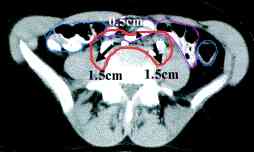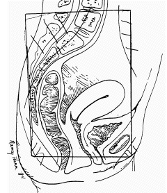blue, rectum by thin dark purple, bladder by thin turquoise, and