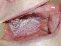 The hard palate is the most common site of minor salivary gland tumors in the oral cavity. Squamous cell carcinomas arising from the hard palate are rare, are usually ulcerative, and invade the underlying bone in the early stage of disease. Most carcinomas are well differentiated with a 15% to 20% incidence of lymph node metastases; the submandibular, upper jugular, and subdigastric nodes are commonly involved. Exceptional early lesions without bony involvement can be treated satisfactorily with radiation therapy alone; surgery is reserved for salvage of irradiation failures. Advanced, deeply ulcerative, infiltrative lesions with bone destruction are better treated by combined radiation therapy and surgery; the resulting bone defect can be corrected by an obturator. Malignant salivary gland tumors are always treated by combined surgery and postoperative radiation therapy. Some inoperable malignant minor salivary gland tumors have been successfully controlled with high-dose irradiation. (see NCI oral cavity cancer, see NCCN guidelines and NCCN dose, read review article here |