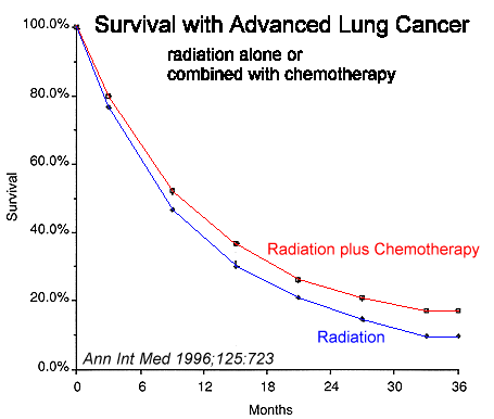 Radiation plus Chemotherapy In patients strong enough to tolerate both, there have been many studies that show that survival results are better if radiation is combined with radiation (see survival curve from the meta-analysis.) Several recent trials are
