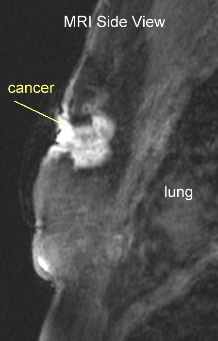 An elderly man with a 3 cm cancer in his left breast, it was well see on MRI scans (