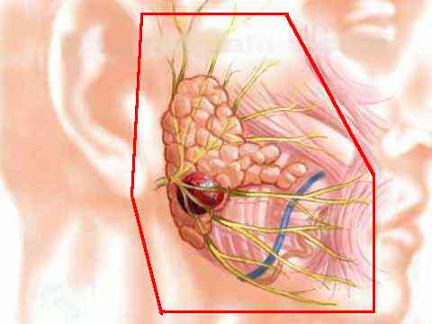 Treatment (according to the NCI): "The minimum therapy for low-grade malignancies of the superficial portion of the parotid gland is a superficial parotidectomy. For all other lesions, a total parotidectomy is often indicated. There is growing evidence that postoperative radiation therapy does augment surgical resection, particularly for the high-grade neoplasms, or when margins are close or involved." See typical radiation techniques with either mixed beam or wedged pair , port around tumor, typical radiation port |