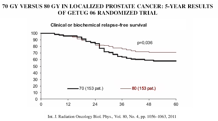 dose but lower risk patients probably do well with doses of about 70Gy. (Go