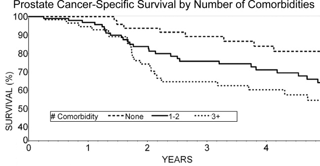 diagnosis, and a Gleason score >7 in the primary tumor. CONCLUSIONS. Patients with M+ prostate cancer have a protracted natural history and a median survival that exceeds 5 years. Hormonal therapy is the mainstay for such patients. Comorbid illness, young age at diagnosis, and cancer grade appear to negatively affect the disease-specific survival. |