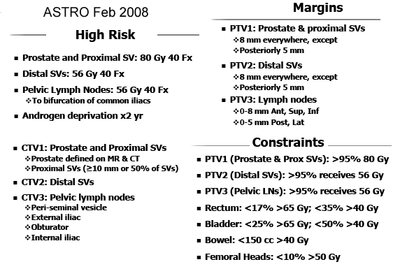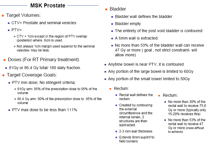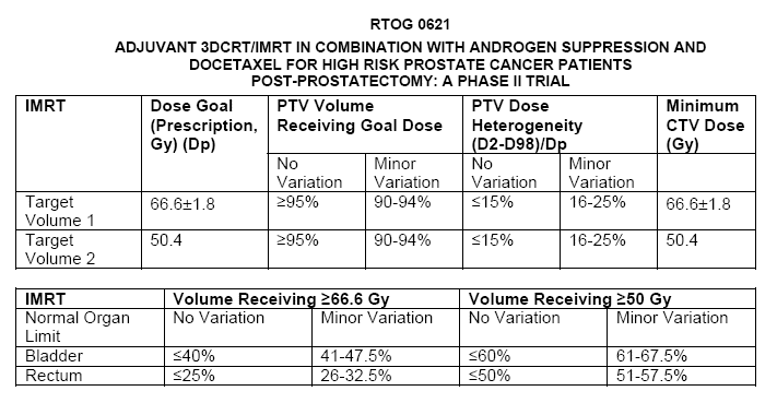 most patients given external beam are treated using IMRT (of IGRT) techniques, the recommended doses and the safe doses to normal structures are constantly being revised, some current representative guidelines are noted below