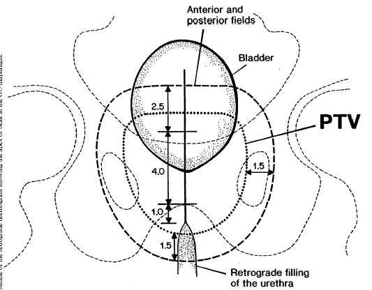 alone (63 - 66Gy) with radiation plus two years of Lupron, the radiation ports are