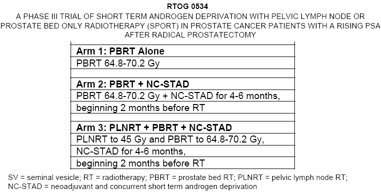 The current RTOG trial (96-01) for T3 lesions waits until the PSA is between 0.5 and 4.0 and is comparing postOp radiation alone (64.8G) or combined with Casodex for 2 years. |