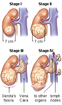 stage II, 64% for stage III and 23% for stage IV. The cure rate is clearly related to stage as noted here and here. There are numerous tables showing survival by stage (e.g. here). But note that much of this data is from older time periods and may not be accurate particularly with the introduction of the new molecularly targeted therapies (e.g. Sutent) that may dramatically improve survival rates . |