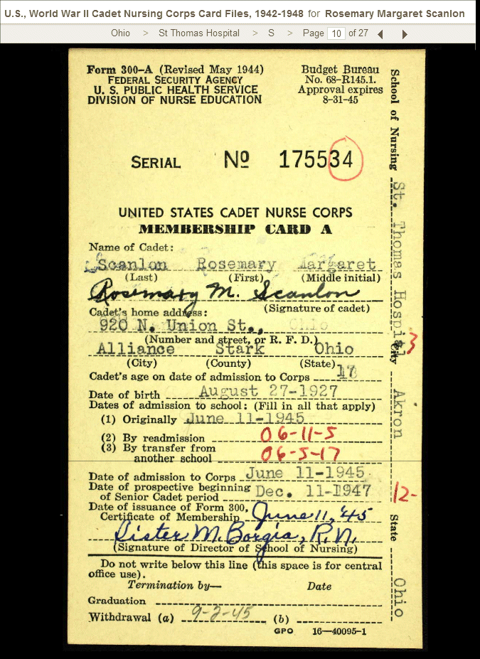 Rosemary Scanlon was born in Alliance, Ohio in 1927
