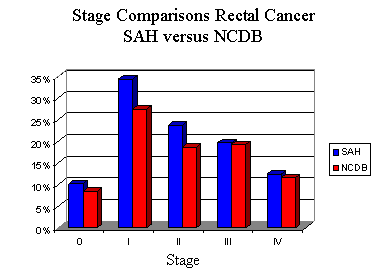 Rectum Colorectal cancer is the fourth most common cancer in the US accounting for 11% of all cancers. At St. Anthony’s Hospital (SAH) this cancer is the third most common cancer and accounts for 14% if all cases in the Cancer Registry. We reviewed all analytic cases in the registry from 1987 through 2004 and compared this to the available data from the National Cancer Data Base (NCDB.)