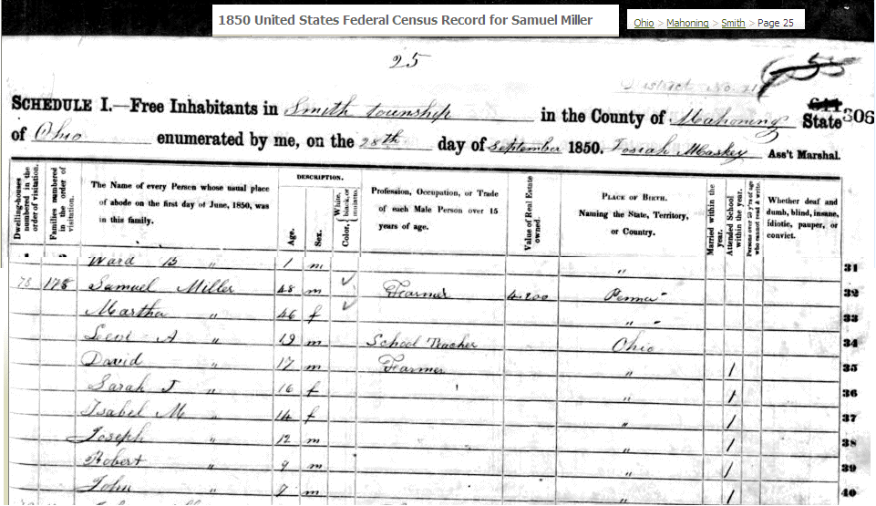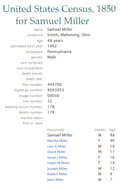 1802, their only child, Samuel Miller was born in Lancaster County Pennsylvania.
