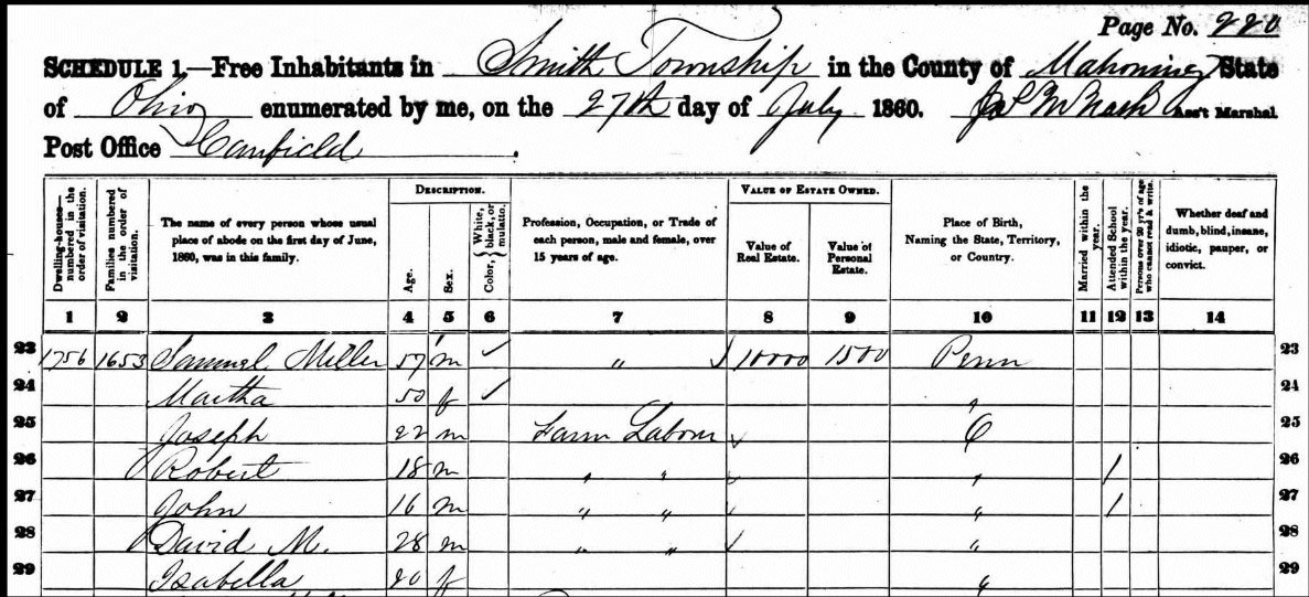 arriving in Washington Count, PA in 1803. His mother remarried David McConaughy. In 1817 they moved to Deerfield, Ohio on the banks of the Mahoning river.