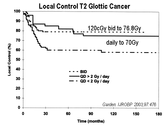 either hyperfractionation or daily doses over 200cGy. The results from MDA with this